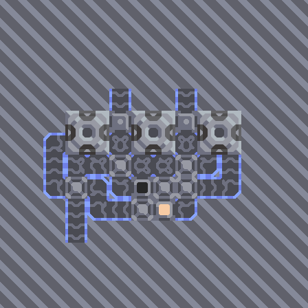 Compact three Silicon Smelter setup.Two top inputs: coal and sand.Sorters pull only the required inputs into the factories; any unwanted items pass straight through the main line and exit mixed with the output.